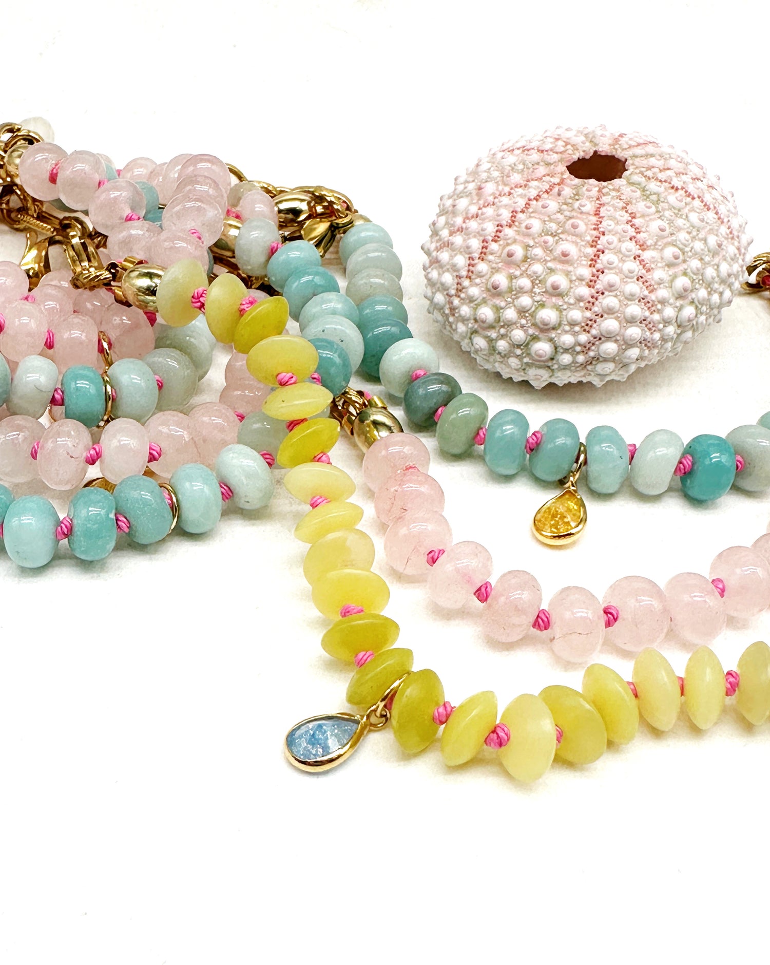 Our best-selling bracelets are the epitome of quiet luxury - timeless hand-knotted gemstone treasures, finished with a sparkling briolette.